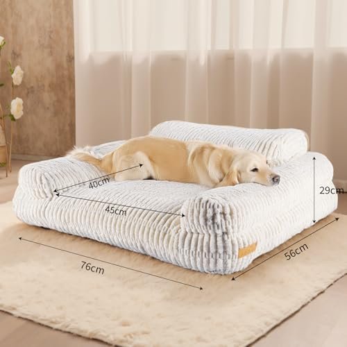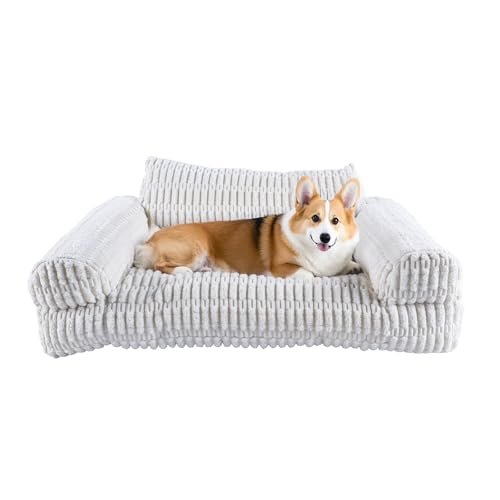 Comfy Pet Sofa Bed: Soft Corduroy Fleece, Non-Slip 30″ Dog Couch, Cream